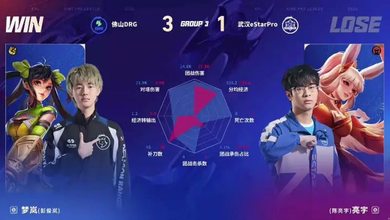 DRG/ES第四局数据图:梦岚公孙离零死亡且多项数据拉满